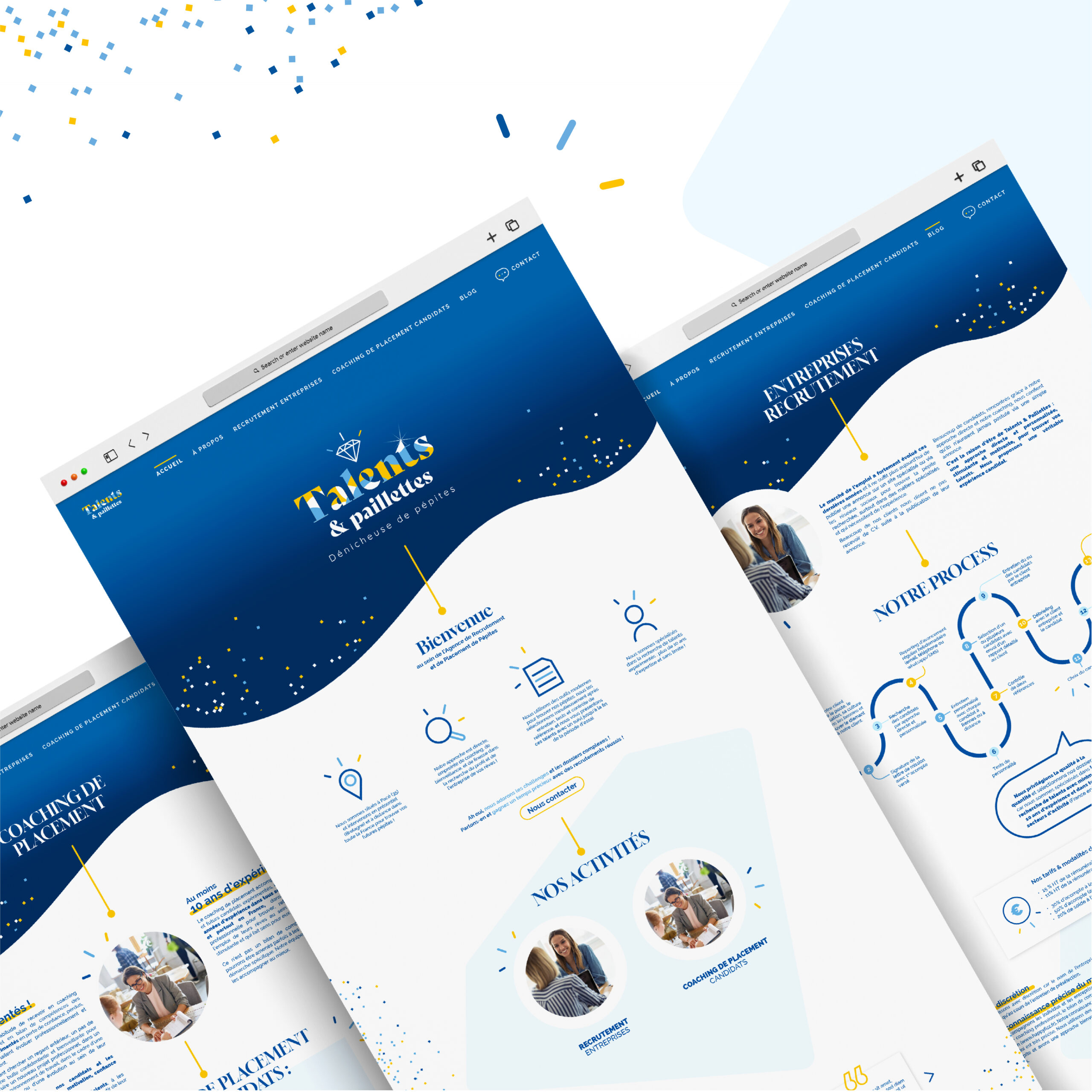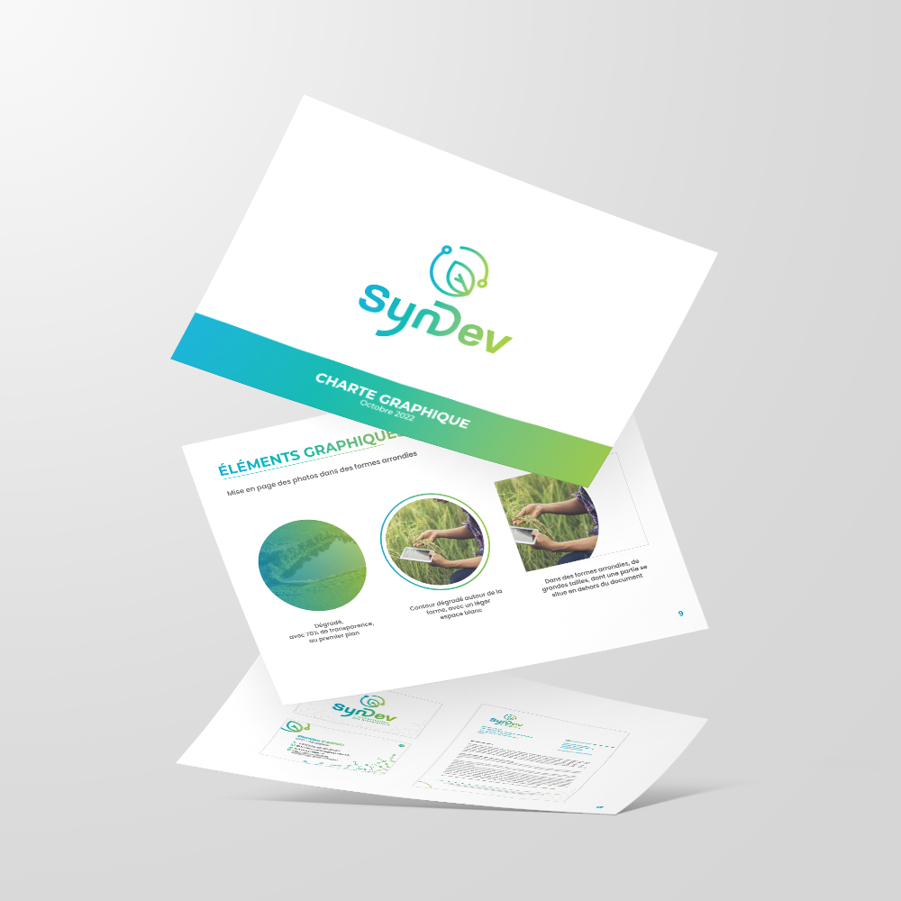 À l’issue de notre collaboration, vous aurez une identité visuelle complète avec un logo, une palette de couleurs, des typographies, des éléments visuels (modèles de supports, pictos…) et un document de charte graphique.